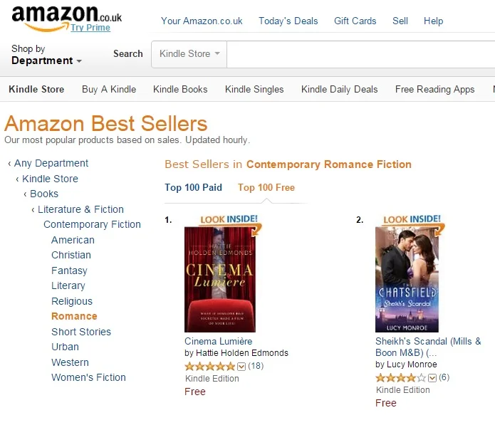 Thrilling news. Cinema Lumière made a good old dent in the Amazon contemporary romance giveaway list. So a big, fat thank you to everyone who downloaded the Kindle edition over the weekend of 22nd Feb. Very, very grateful!
